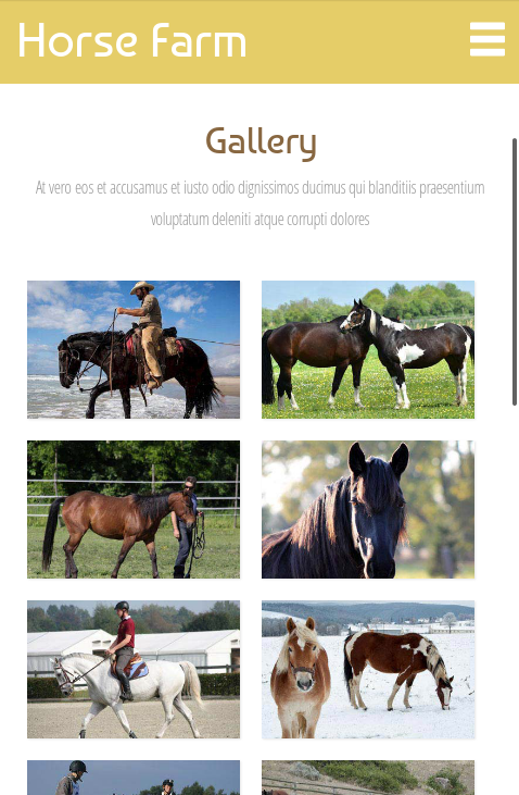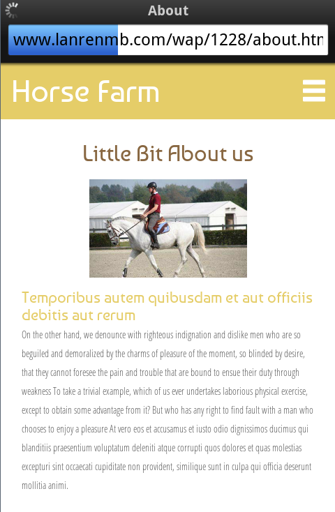 模板简介:该模板名称为【马匹养殖场触屏版自适应html5手机wap网站模板源码下载】,大小是,文档格式为.,推荐使用打开,作品中的图片,文字等数据均可修改,图片请在作品中选中图片替换即可,文字修改直接点击文字修改即可,您也可以新增或修改作品中的内容,该模板来自用户分享,如有侵权行为请联系网站客服处理。欢迎来懒人模板【HTML5】栏目查找您需要的精美模板。