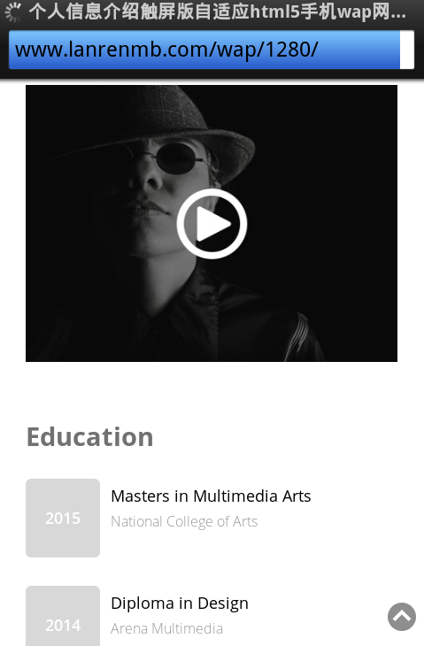 模板简介:该模板名称为【个人信息介绍触屏版自适应html5手机wap网站模板源码下载】,大小是,文档格式为.,推荐使用打开,作品中的图片,文字等数据均可修改,图片请在作品中选中图片替换即可,文字修改直接点击文字修改即可,您也可以新增或修改作品中的内容,该模板来自用户分享,如有侵权行为请联系网站客服处理。欢迎来懒人模板【HTML5】栏目查找您需要的精美模板。