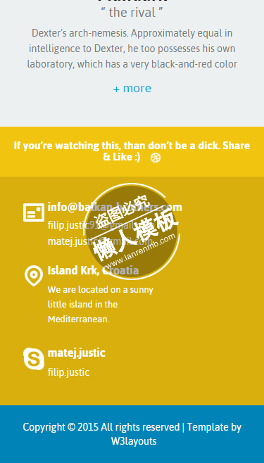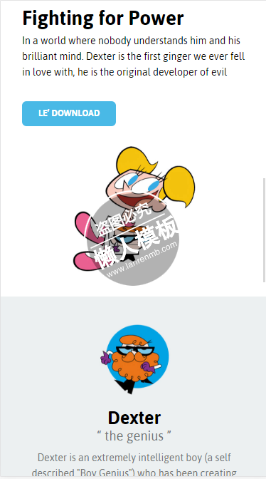 模板简介:该模板名称为【The Lab蓝色卡通版html5手机专题单页网站模板源码下载】,大小是,文档格式为.,推荐使用打开,作品中的图片,文字等数据均可修改,图片请在作品中选中图片替换即可,文字修改直接点击文字修改即可,您也可以新增或修改作品中的内容,该模板来自用户分享,如有侵权行为请联系网站客服处理。欢迎来懒人模板【单页】栏目查找您需要的精美模板。