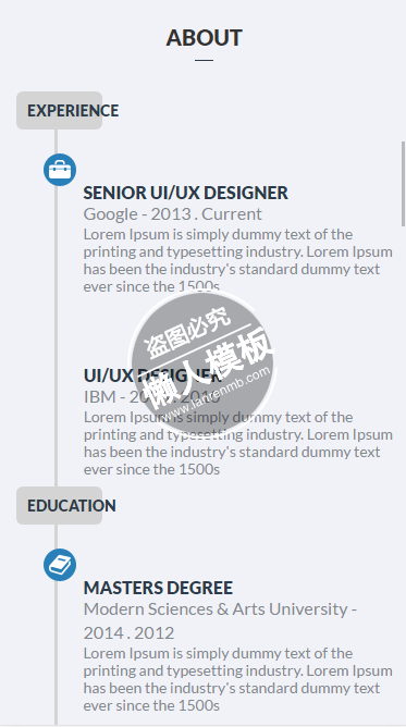 模板简介:该模板名称为【My Cv Bootstarp html5手机wap个人简历工作室网站模板源码下载】,大小是,文档格式为.,推荐使用打开,作品中的图片,文字等数据均可修改,图片请在作品中选中图片替换即可,文字修改直接点击文字修改即可,您也可以新增或修改作品中的内容,该模板来自用户分享,如有侵权行为请联系网站客服处理。欢迎来懒人模板【个人】栏目查找您需要的精美模板。