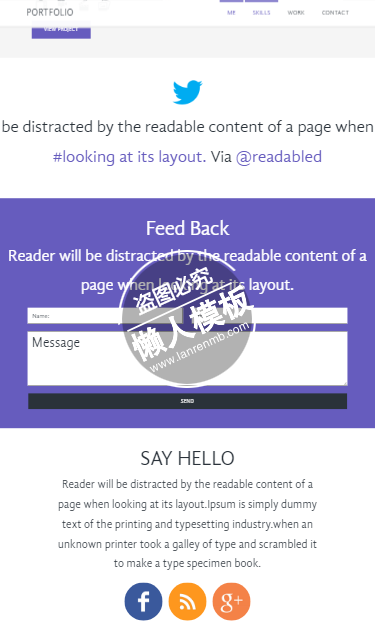 模板简介:该模板名称为【portfolio lipsum自适应html5个人简历工作室网站模板源码下载】,大小是,文档格式为.,推荐使用打开,作品中的图片,文字等数据均可修改,图片请在作品中选中图片替换即可,文字修改直接点击文字修改即可,您也可以新增或修改作品中的内容,该模板来自用户分享,如有侵权行为请联系网站客服处理。欢迎来懒人模板【个人】栏目查找您需要的精美模板。