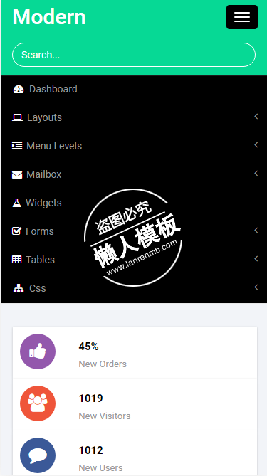 模板简介:该模板名称为【Modern后台管理网站触屏版自适应html5手机wap网站模板源码下载】,大小是,文档格式为.,推荐使用打开,作品中的图片,文字等数据均可修改,图片请在作品中选中图片替换即可,文字修改直接点击文字修改即可,您也可以新增或修改作品中的内容,该模板来自用户分享,如有侵权行为请联系网站客服处理。欢迎来懒人模板【后台管理】栏目查找您需要的精美模板。