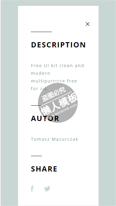 模板简介:该模板名称为【Thomsoon简单黑白色调触屏版html5手机UI套件网站模板源码下载】,大小是,文档格式为.,推荐使用打开,作品中的图片,文字等数据均可修改,图片请在作品中选中图片替换即可,文字修改直接点击文字修改即可,您也可以新增或修改作品中的内容,该模板来自用户分享,如有侵权行为请联系网站客服处理。欢迎来懒人模板【ui套件】栏目查找您需要的精美模板。