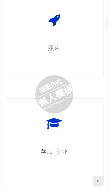 模板简介:该模板名称为【手机移动端网上个人简历js特效下载】,大小是,文档格式为.,推荐使用打开,作品中的图片,文字等数据均可修改,图片请在作品中选中图片替换即可,文字修改直接点击文字修改即可,您也可以新增或修改作品中的内容,该模板来自用户分享,如有侵权行为请联系网站客服处理。欢迎来懒人模板【前端框架】栏目查找您需要的精美模板。