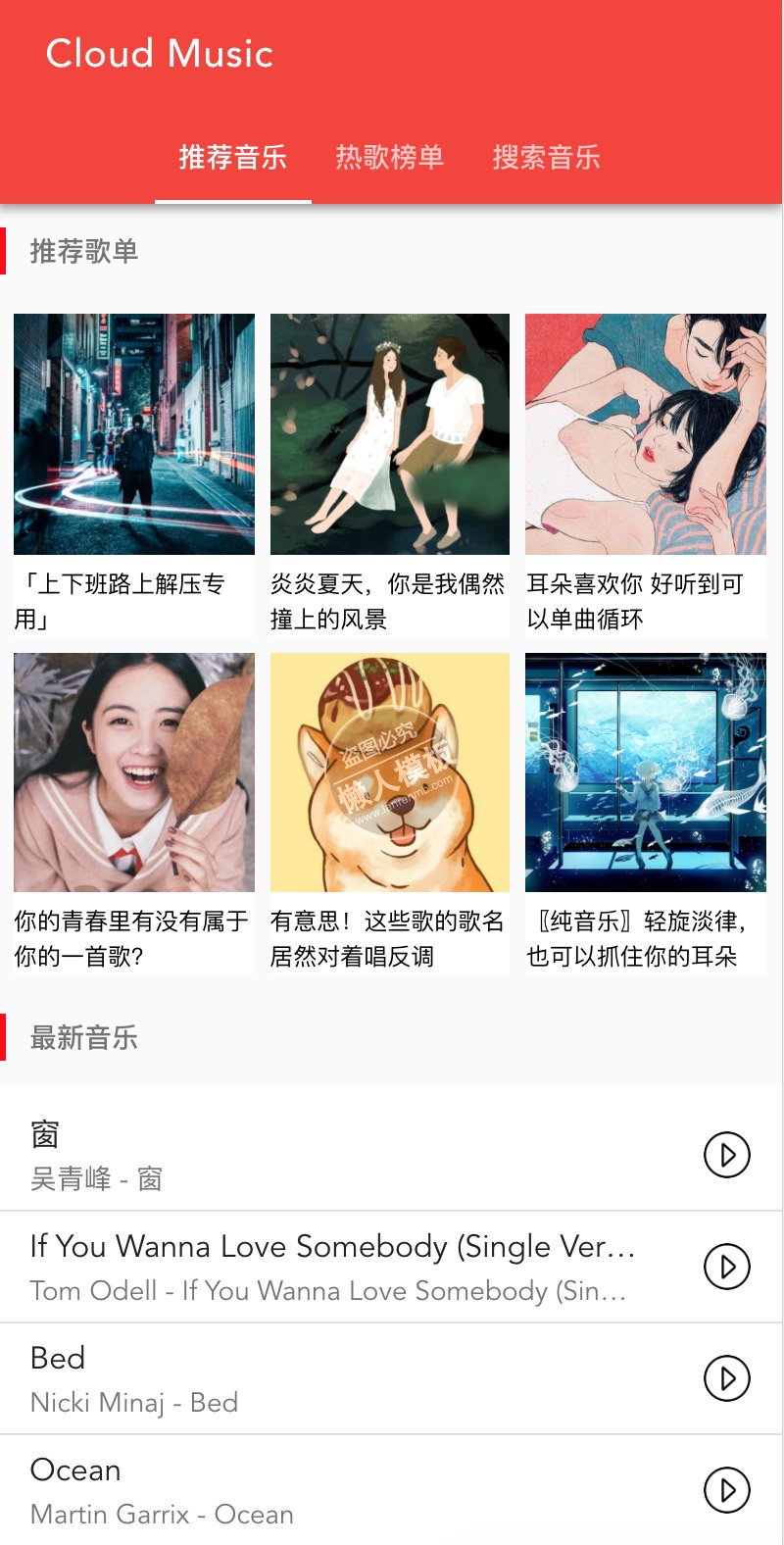 模板简介:该模板名称为【手机Vuejs应用移动端网易云音乐js特效下载】,大小是,文档格式为.,推荐使用打开,作品中的图片,文字等数据均可修改,图片请在作品中选中图片替换即可,文字修改直接点击文字修改即可,您也可以新增或修改作品中的内容,该模板来自用户分享,如有侵权行为请联系网站客服处理。欢迎来懒人模板【前端框架】栏目查找您需要的精美模板。