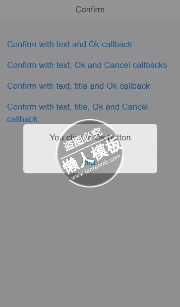 模板简介:该模板名称为【Confirm modal html5移动端手机web应用前端ui框架源码下载】,大小是,文档格式为.,推荐使用打开,作品中的图片,文字等数据均可修改,图片请在作品中选中图片替换即可,文字修改直接点击文字修改即可,您也可以新增或修改作品中的内容,该模板来自用户分享,如有侵权行为请联系网站客服处理。欢迎来懒人模板【前端框架】栏目查找您需要的精美模板。