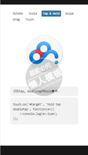 模板简介:该模板名称为【手机移动端手势操作内置了事件和手势库js特效下载】,大小是,文档格式为.,推荐使用打开,作品中的图片,文字等数据均可修改,图片请在作品中选中图片替换即可,文字修改直接点击文字修改即可,您也可以新增或修改作品中的内容,该模板来自用户分享,如有侵权行为请联系网站客服处理。欢迎来懒人模板【tab标签】栏目查找您需要的精美模板。
