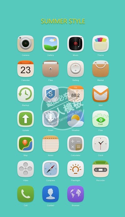 模板简介:该模板名称为【绿色背景夏天风格图标ui界面设计移动端手机网页psd素材下载】,大小是,文档格式为.,推荐使用打开,作品中的图片,文字等数据均可修改,图片请在作品中选中图片替换即可,文字修改直接点击文字修改即可,您也可以新增或修改作品中的内容,该模板来自用户分享,如有侵权行为请联系网站客服处理。欢迎来懒人模板【图标】栏目查找您需要的精美模板。