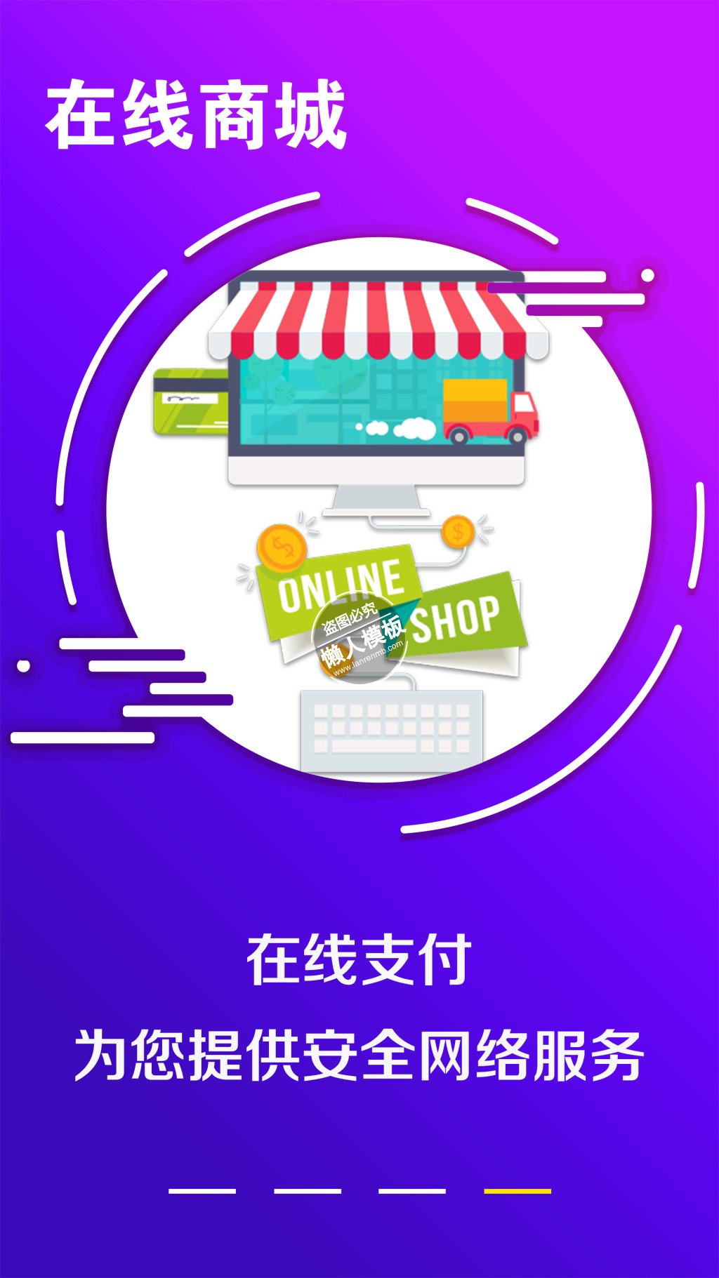 模板简介:该模板名称为【在线网络支付商城引导页ui界面设计移动端手机网页psd素材下载】,大小是,文档格式为.,推荐使用打开,作品中的图片,文字等数据均可修改,图片请在作品中选中图片替换即可,文字修改直接点击文字修改即可,您也可以新增或修改作品中的内容,该模板来自用户分享,如有侵权行为请联系网站客服处理。欢迎来懒人模板【引导页】栏目查找您需要的精美模板。