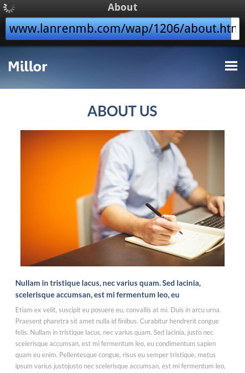 模板简介:该模板名称为【app软件millor触屏版自适应手机wap网站模板源码下载】,大小是,文档格式为.,推荐使用打开,作品中的图片,文字等数据均可修改,图片请在作品中选中图片替换即可,文字修改直接点击文字修改即可,您也可以新增或修改作品中的内容,该模板来自用户分享,如有侵权行为请联系网站客服处理。欢迎来懒人模板【软件】栏目查找您需要的精美模板。