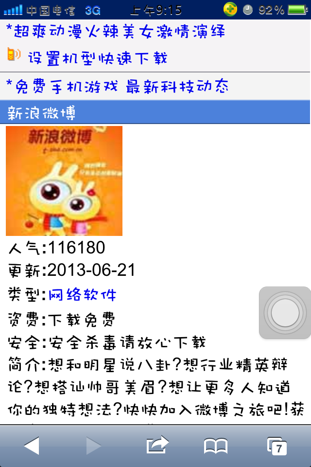 模板简介:该模板名称为【仿宜搜软件手机wap网站模板】,大小是,文档格式为.,推荐使用打开,作品中的图片,文字等数据均可修改,图片请在作品中选中图片替换即可,文字修改直接点击文字修改即可,您也可以新增或修改作品中的内容,该模板来自用户分享,如有侵权行为请联系网站客服处理。欢迎来懒人模板【软件】栏目查找您需要的精美模板。