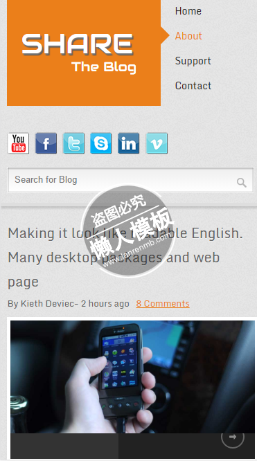 模板简介:该模板名称为【Free Share社交图片html5手机wap学生个人博客网站模板源码下载】,大小是,文档格式为.,推荐使用打开,作品中的图片,文字等数据均可修改,图片请在作品中选中图片替换即可,文字修改直接点击文字修改即可,您也可以新增或修改作品中的内容,该模板来自用户分享,如有侵权行为请联系网站客服处理。欢迎来懒人模板【微博】栏目查找您需要的精美模板。