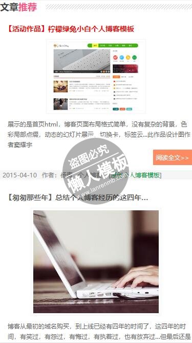 模板简介:该模板名称为【杨青个人博客全版文章展示手机wap学生个人博客网站模板源码下载】,大小是,文档格式为.,推荐使用打开,作品中的图片,文字等数据均可修改,图片请在作品中选中图片替换即可,文字修改直接点击文字修改即可,您也可以新增或修改作品中的内容,该模板来自用户分享,如有侵权行为请联系网站客服处理。欢迎来懒人模板【微博】栏目查找您需要的精美模板。