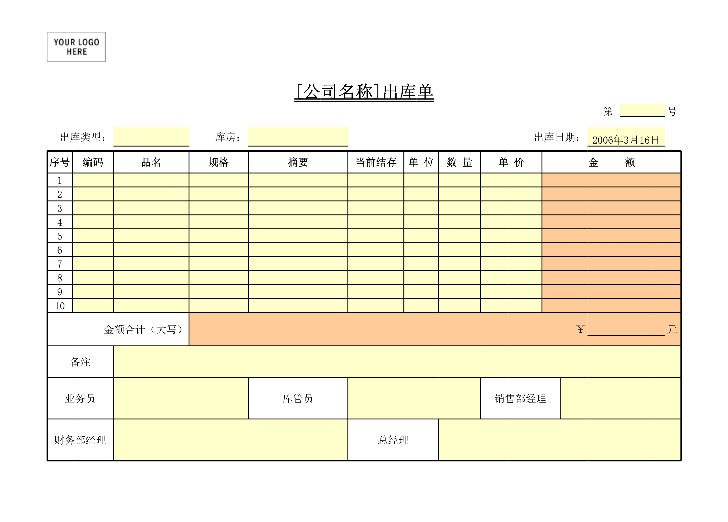 模板简介:该模板名称为【出库单Excle表格样本模板免费下载】,大小是33.5KB,文档格式为.xls,推荐使用Microsoft Excel/WPS打开,作品中的图片,文字等数据均可修改,图片请在作品中选中图片替换即可,文字修改直接点击文字修改即可,您也可以新增或修改作品中的内容,该模板来自用户分享,如有侵权行为请联系网站客服处理。欢迎来懒人模板【仓储购销】栏目查找您需要的精美模板。