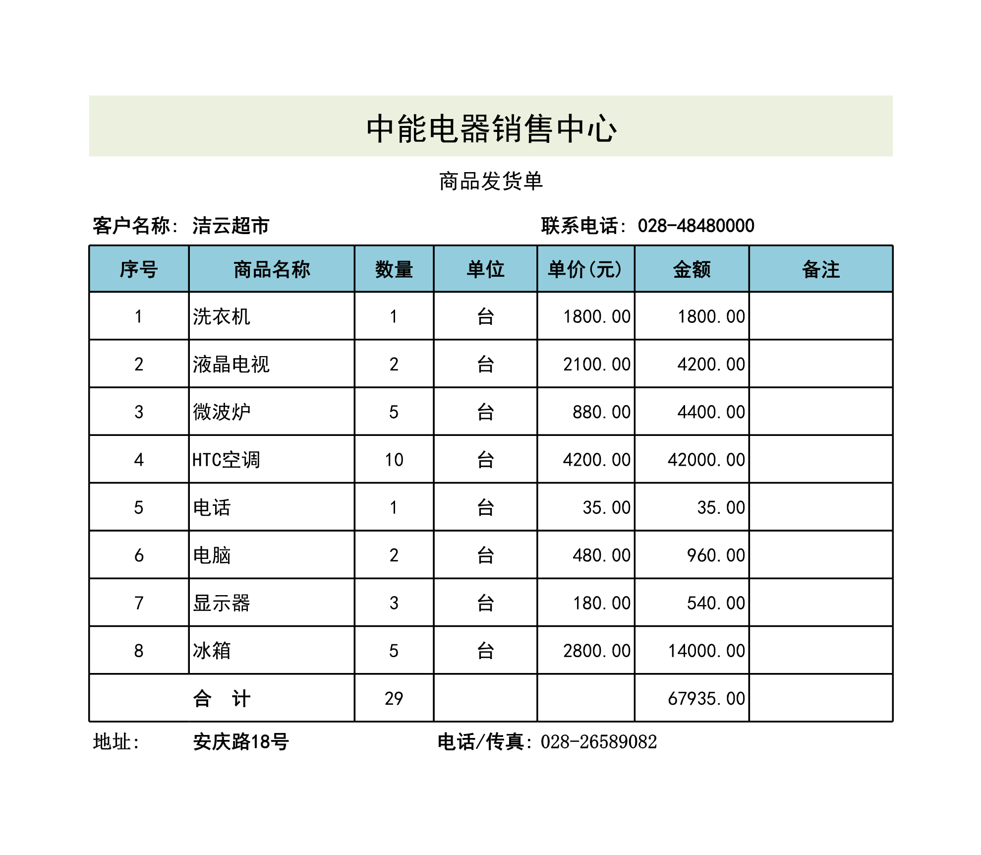模板简介:该模板名称为【商品发货单Excle表格样本模板免费下载】,大小是10.74 KB,文档格式为.xls,推荐使用Microsoft Word/WPS打开,作品中的图片,文字等数据均可修改,图片请在作品中选中图片替换即可,文字修改直接点击文字修改即可,您也可以新增或修改作品中的内容,该模板来自用户分享,如有侵权行为请联系网站客服处理。欢迎来懒人模板【仓储购销】栏目查找您需要的精美模板。