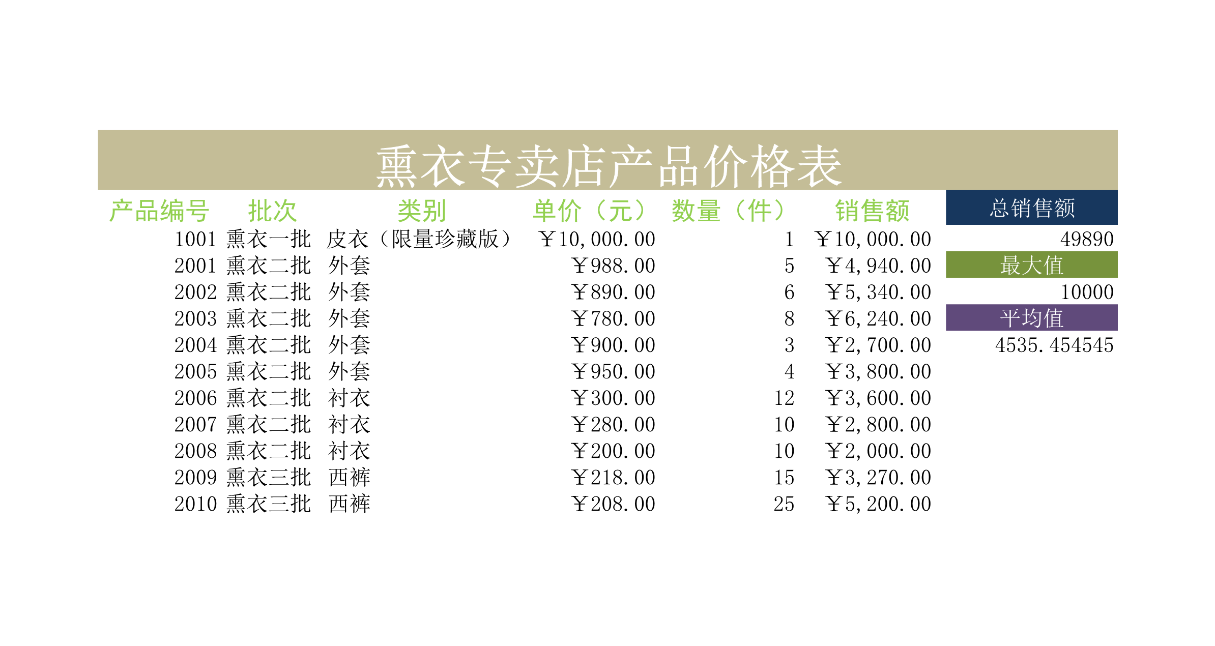 模板简介:该模板名称为【熏衣专卖店产品价格表Excle表格样本模板免费下载】,大小是11.14 KB,文档格式为.xls,推荐使用Microsoft Excel/WPS打开,作品中的图片,文字等数据均可修改,图片请在作品中选中图片替换即可,文字修改直接点击文字修改即可,您也可以新增或修改作品中的内容,该模板来自用户分享,如有侵权行为请联系网站客服处理。欢迎来懒人模板【仓储购销】栏目查找您需要的精美模板。