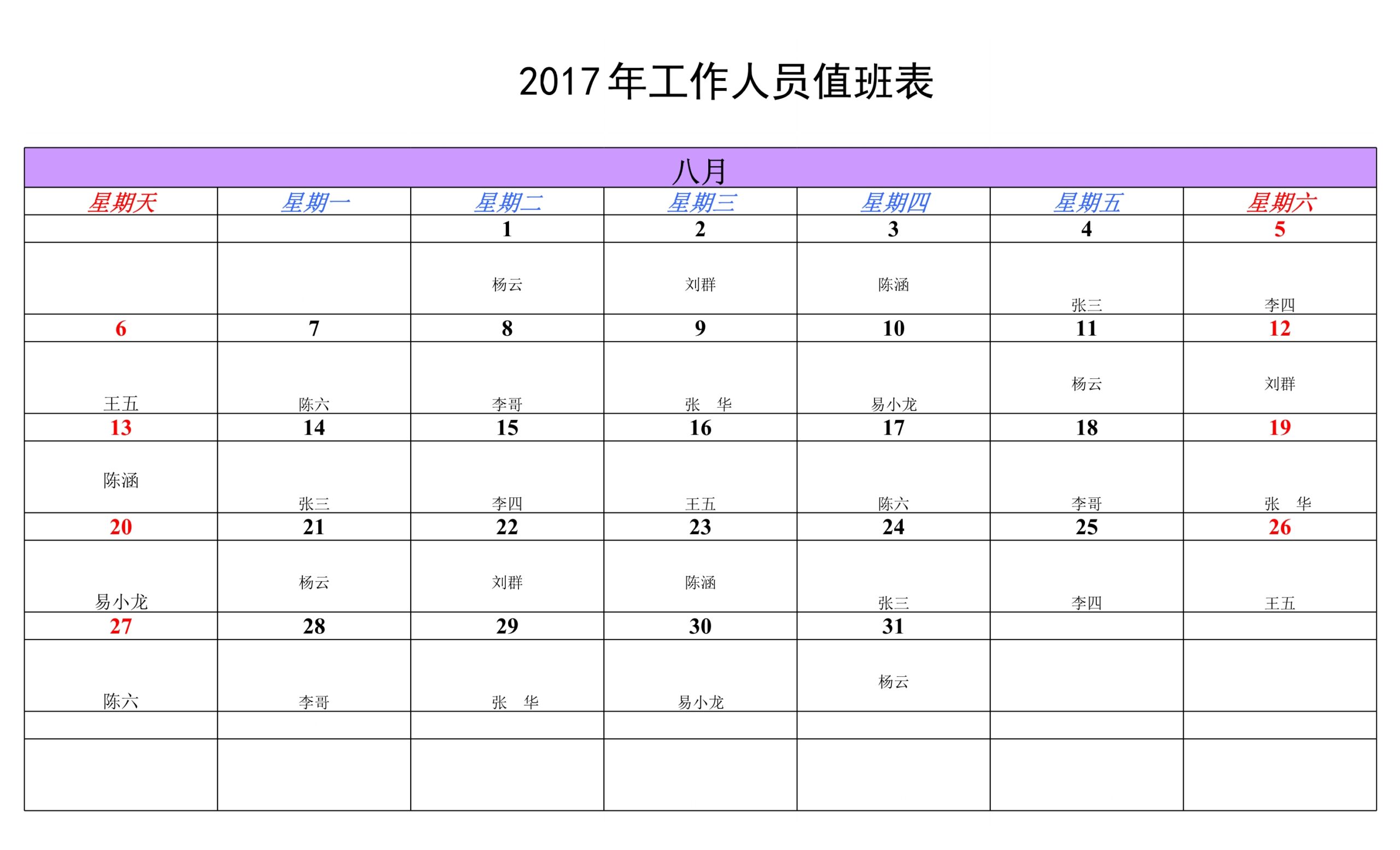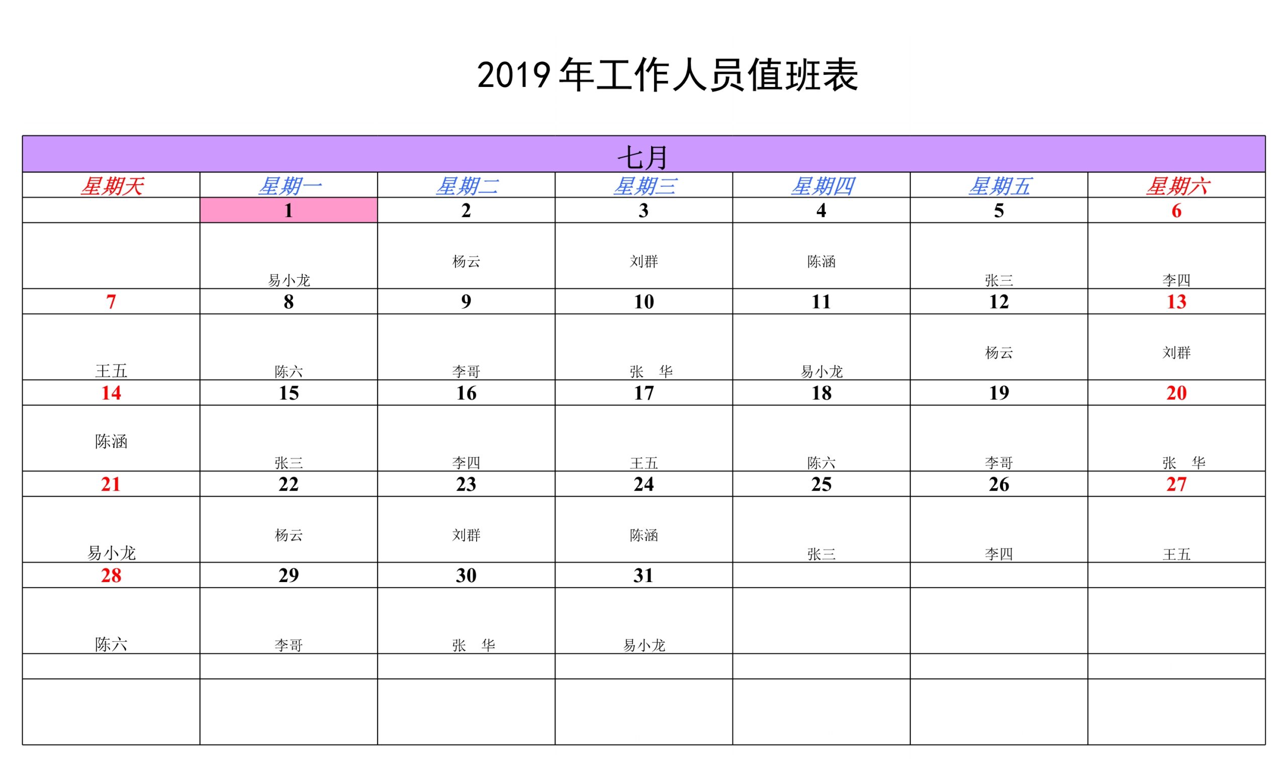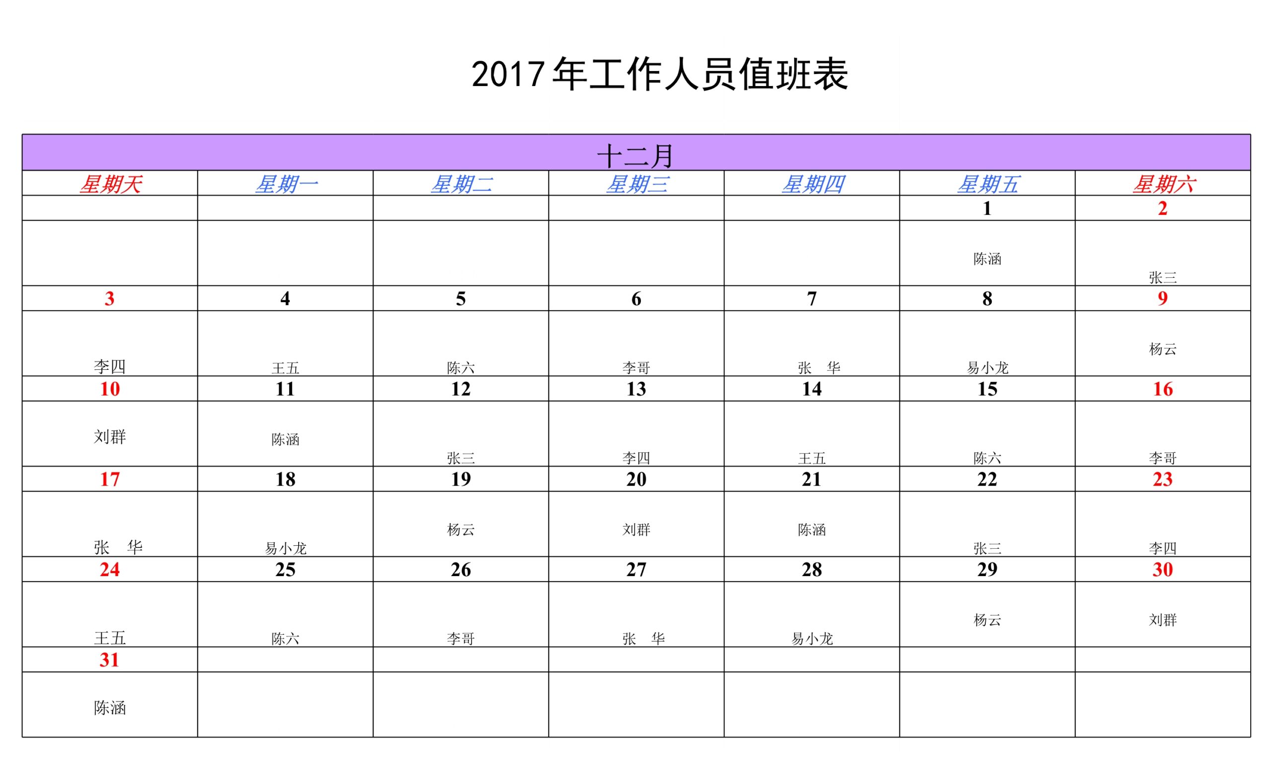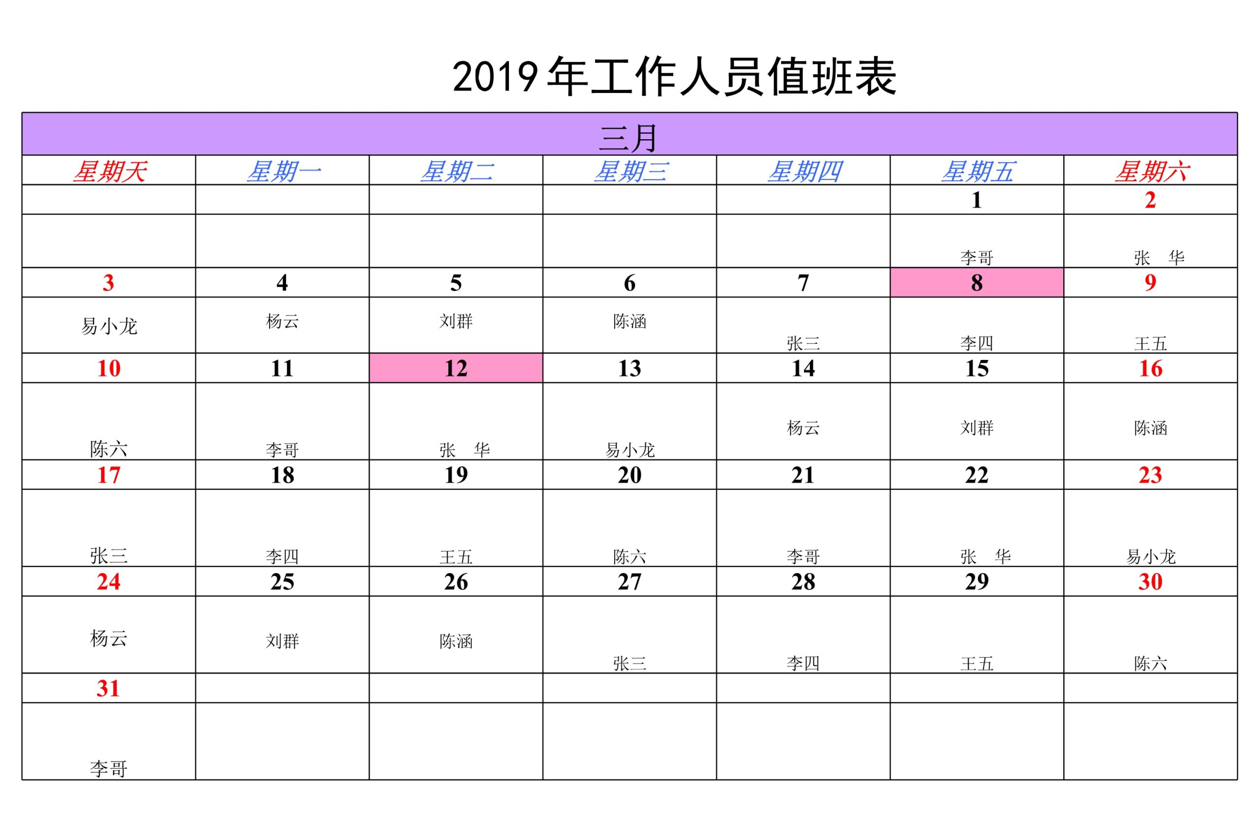 模板简介:该模板名称为【自动生成全年排班表Excle表格样本模板免费下载】,大小是257.50 KB,文档格式为.xls,推荐使用Microsoft Excel/WPS打开,作品中的图片,文字等数据均可修改,图片请在作品中选中图片替换即可,文字修改直接点击文字修改即可,您也可以新增或修改作品中的内容,该模板来自用户分享,如有侵权行为请联系网站客服处理。欢迎来懒人模板【人事管理,可视化图表】栏目查找您需要的精美模板。