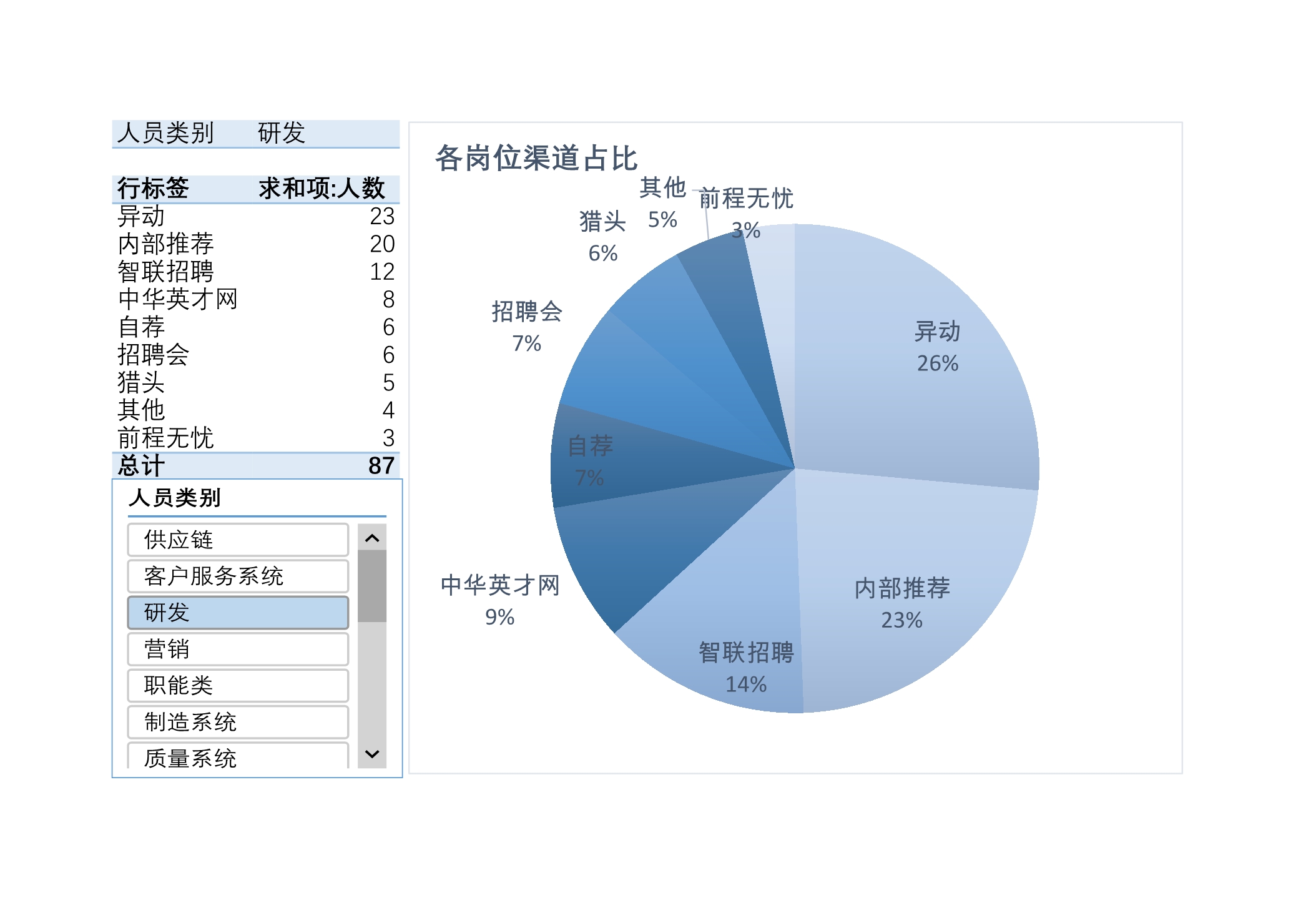 模板简介:该模板名称为【招聘渠道岗位分布分析Excle表格样本模板免费下载】,大小是67.72 KB,文档格式为.xls,推荐使用Microsoft Excel/WPS打开,作品中的图片,文字等数据均可修改,图片请在作品中选中图片替换即可,文字修改直接点击文字修改即可,您也可以新增或修改作品中的内容,该模板来自用户分享,如有侵权行为请联系网站客服处理。欢迎来懒人模板【可视化图表,行政管理】栏目查找您需要的精美模板。