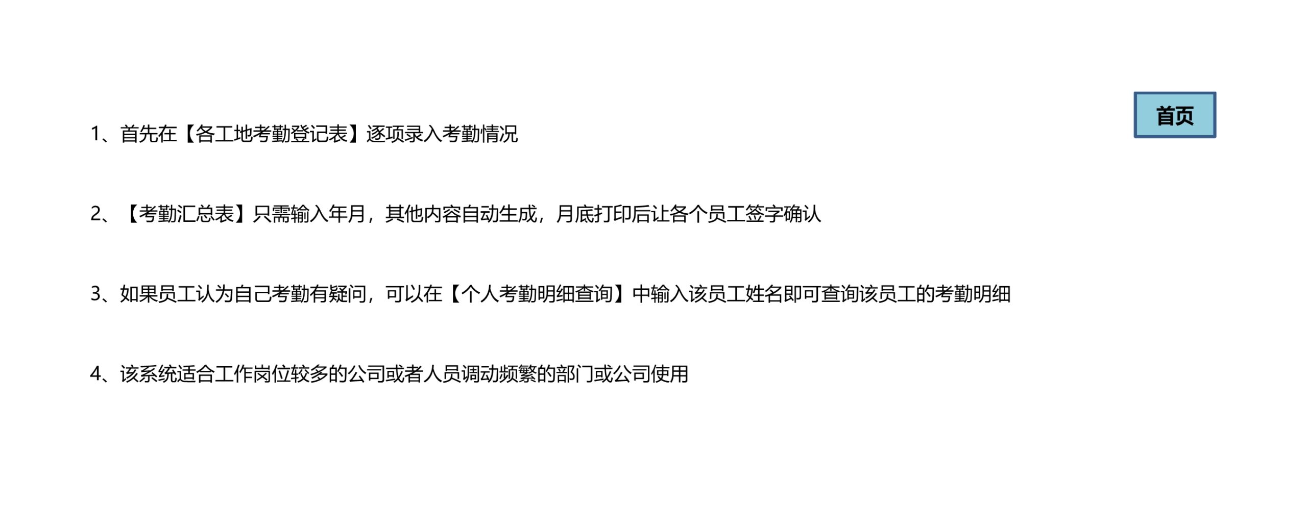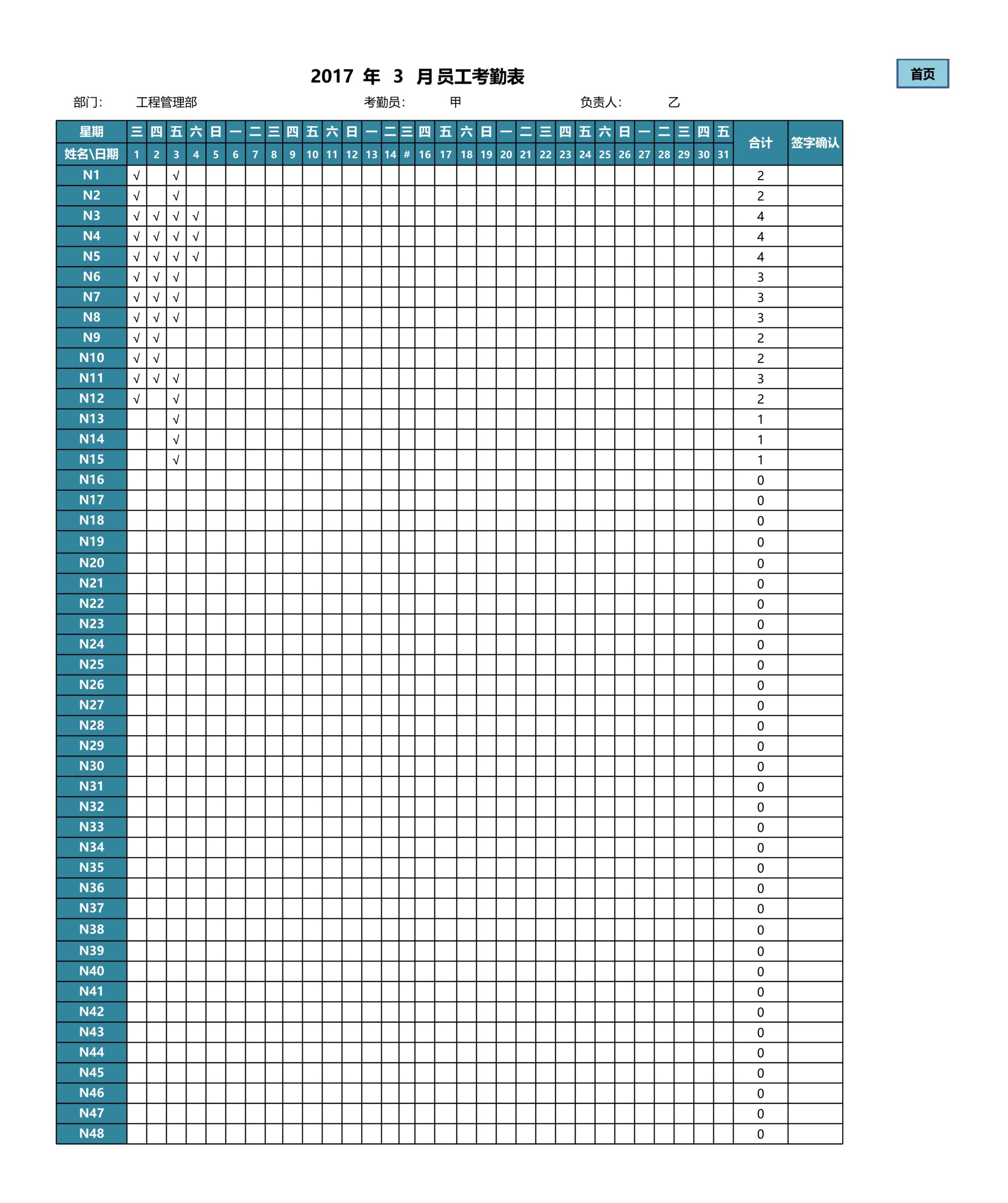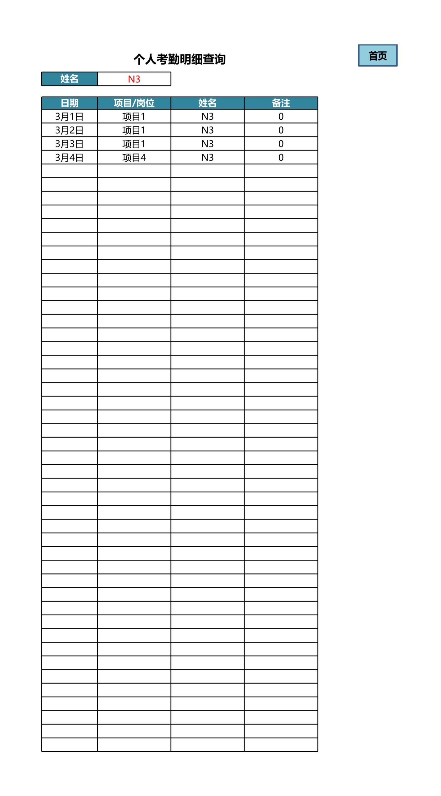 模板简介:该模板名称为【自动统计多岗位每月考勤及查询明细Excle表格样本模板免费下载】,大小是122.87 KB ,文档格式为.xls,推荐使用Microsoft Excel/WPS打开,作品中的图片,文字等数据均可修改,图片请在作品中选中图片替换即可,文字修改直接点击文字修改即可,您也可以新增或修改作品中的内容,该模板来自用户分享,如有侵权行为请联系网站客服处理。欢迎来懒人模板【行政管理】栏目查找您需要的精美模板。