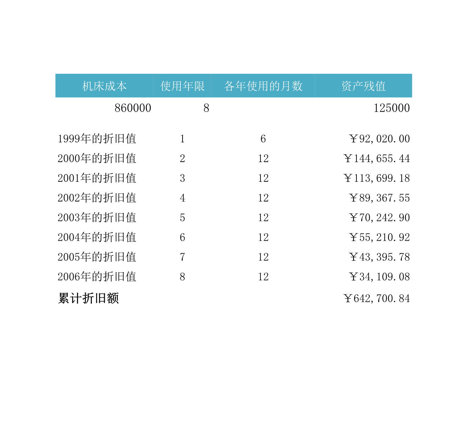 模板简介:该模板名称为【机床折旧值Excle表格样本模板免费下载】,大小是10.50 KB,文档格式为.xls,推荐使用Microsoft Excel/WPS打开,作品中的图片,文字等数据均可修改,图片请在作品中选中图片替换即可,文字修改直接点击文字修改即可,您也可以新增或修改作品中的内容,该模板来自用户分享,如有侵权行为请联系网站客服处理。欢迎来懒人模板【行政管理】栏目查找您需要的精美模板。