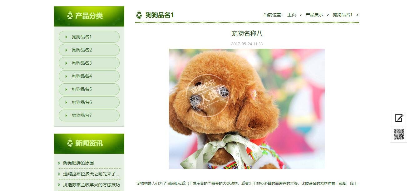 模板简介:该模板名称为【各品种狗狗宠物饲养整站带织梦后台pc手机双网站源码下载】,大小是,文档格式为.,推荐使用打开,作品中的图片,文字等数据均可修改,图片请在作品中选中图片替换即可,文字修改直接点击文字修改即可,您也可以新增或修改作品中的内容,该模板来自用户分享,如有侵权行为请联系网站客服处理。欢迎来懒人模板【宠物】栏目查找您需要的精美模板。