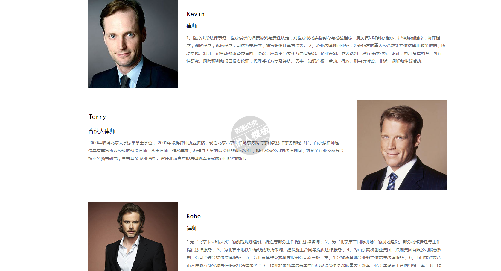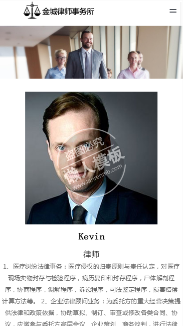 模板简介:该模板名称为【金城律师事务所手机PC端自适应响应式html5法律网站双模板下载】,大小是,文档格式为.,推荐使用打开,作品中的图片,文字等数据均可修改,图片请在作品中选中图片替换即可,文字修改直接点击文字修改即可,您也可以新增或修改作品中的内容,该模板来自用户分享,如有侵权行为请联系网站客服处理。欢迎来懒人模板【法律】栏目查找您需要的精美模板。