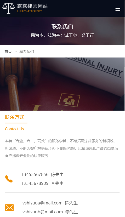 模板简介:该模板名称为【露露法律展示网站自适应响应式法律网站模板免费下载】,大小是,文档格式为.,推荐使用打开,作品中的图片,文字等数据均可修改,图片请在作品中选中图片替换即可,文字修改直接点击文字修改即可,您也可以新增或修改作品中的内容,该模板来自用户分享,如有侵权行为请联系网站客服处理。欢迎来懒人模板【法律】栏目查找您需要的精美模板。