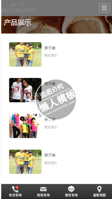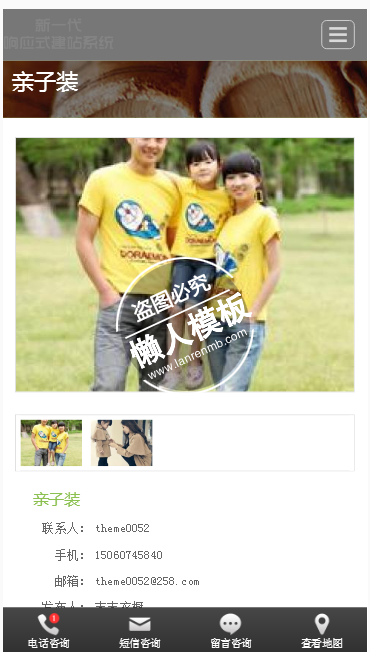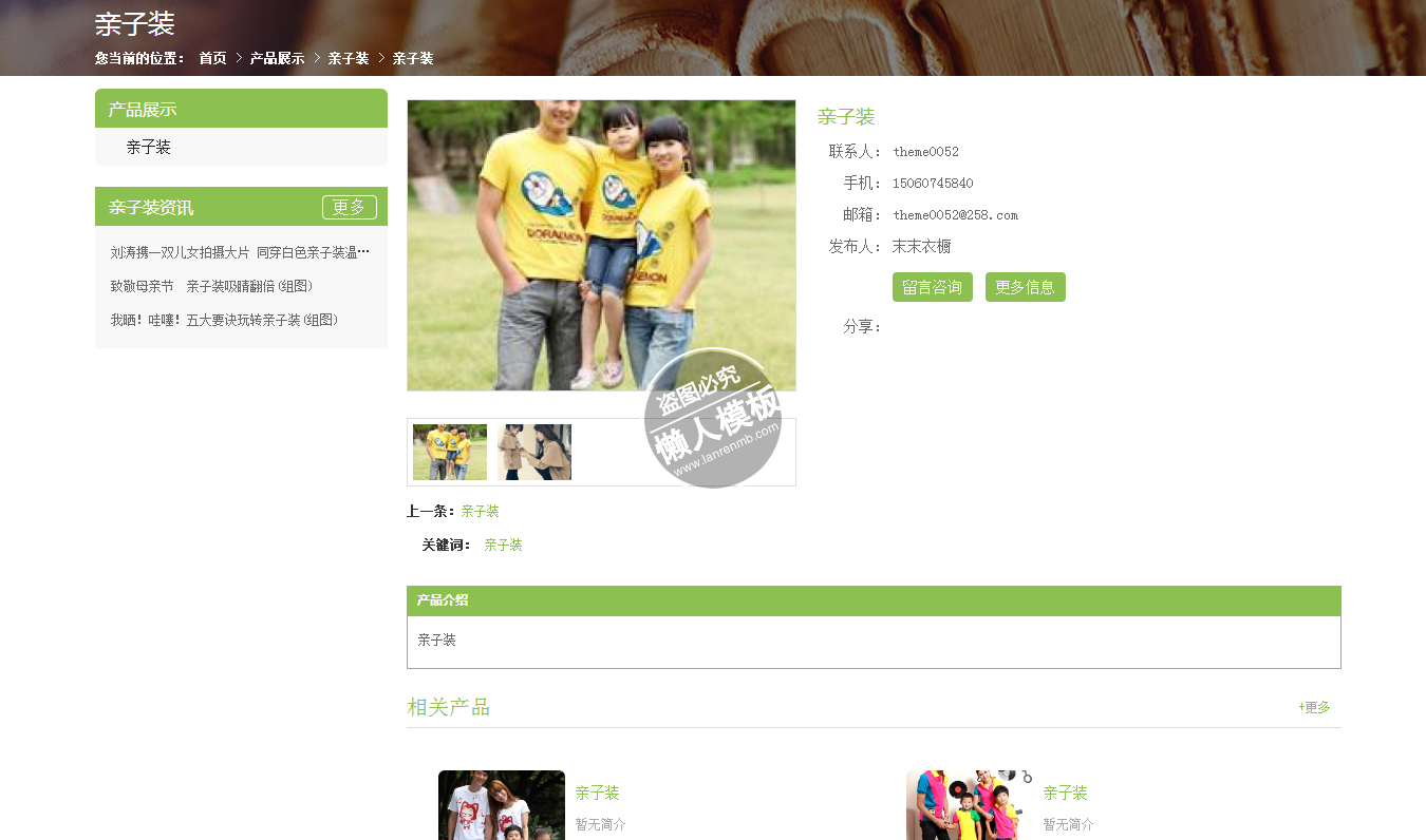 模板简介:该模板名称为【末末衣橱亲子装手机PC端自适应响应式html5服装网站双模板下载】,大小是,文档格式为.,推荐使用打开,作品中的图片,文字等数据均可修改,图片请在作品中选中图片替换即可,文字修改直接点击文字修改即可,您也可以新增或修改作品中的内容,该模板来自用户分享,如有侵权行为请联系网站客服处理。欢迎来懒人模板【服装】栏目查找您需要的精美模板。