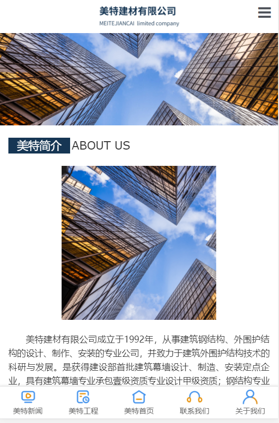 模板简介:该模板名称为【美特建材展示网站自适应响应式服工业制品网站模板免费下载】,大小是,文档格式为.,推荐使用打开,作品中的图片,文字等数据均可修改,图片请在作品中选中图片替换即可,文字修改直接点击文字修改即可,您也可以新增或修改作品中的内容,该模板来自用户分享,如有侵权行为请联系网站客服处理。欢迎来懒人模板【工业制品】栏目查找您需要的精美模板。
