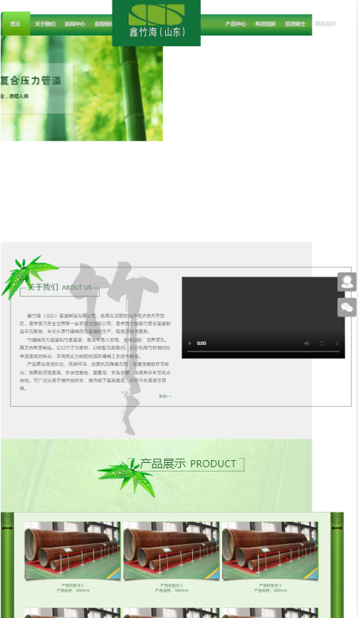 模板简介:该模板名称为【鑫竹海管道展示网站自适应响应式工业制品网站模板免费下载】,大小是,文档格式为.,推荐使用打开,作品中的图片,文字等数据均可修改,图片请在作品中选中图片替换即可,文字修改直接点击文字修改即可,您也可以新增或修改作品中的内容,该模板来自用户分享,如有侵权行为请联系网站客服处理。欢迎来懒人模板【工业制品】栏目查找您需要的精美模板。