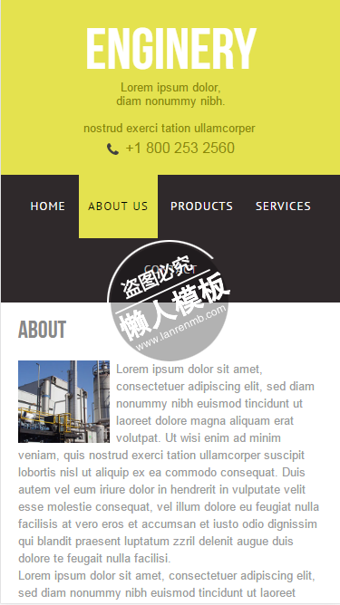 模板简介:该模板名称为【Free Enginery能源厂触屏版html5手机工业企业制品网站模板下载】,大小是,文档格式为.,推荐使用打开,作品中的图片,文字等数据均可修改,图片请在作品中选中图片替换即可,文字修改直接点击文字修改即可,您也可以新增或修改作品中的内容,该模板来自用户分享,如有侵权行为请联系网站客服处理。欢迎来懒人模板【工业制品】栏目查找您需要的精美模板。