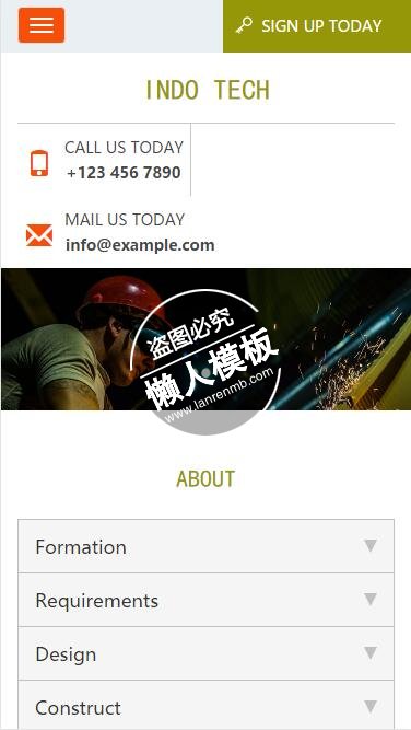 模板简介:该模板名称为【Indo Tech厂房机器操作html5工业企业制品手机wap网站模板下载】,大小是,文档格式为.,推荐使用打开,作品中的图片,文字等数据均可修改,图片请在作品中选中图片替换即可,文字修改直接点击文字修改即可,您也可以新增或修改作品中的内容,该模板来自用户分享,如有侵权行为请联系网站客服处理。欢迎来懒人模板【工业制品】栏目查找您需要的精美模板。