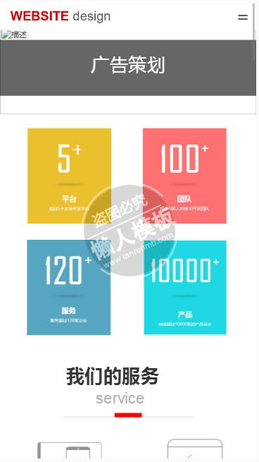 模板简介:该模板名称为【炫彩广告策划公司手机PC端企业网站双模板下载】,大小是,文档格式为.,推荐使用打开,作品中的图片,文字等数据均可修改,图片请在作品中选中图片替换即可,文字修改直接点击文字修改即可,您也可以新增或修改作品中的内容,该模板来自用户分享,如有侵权行为请联系网站客服处理。欢迎来懒人模板【广告】栏目查找您需要的精美模板。