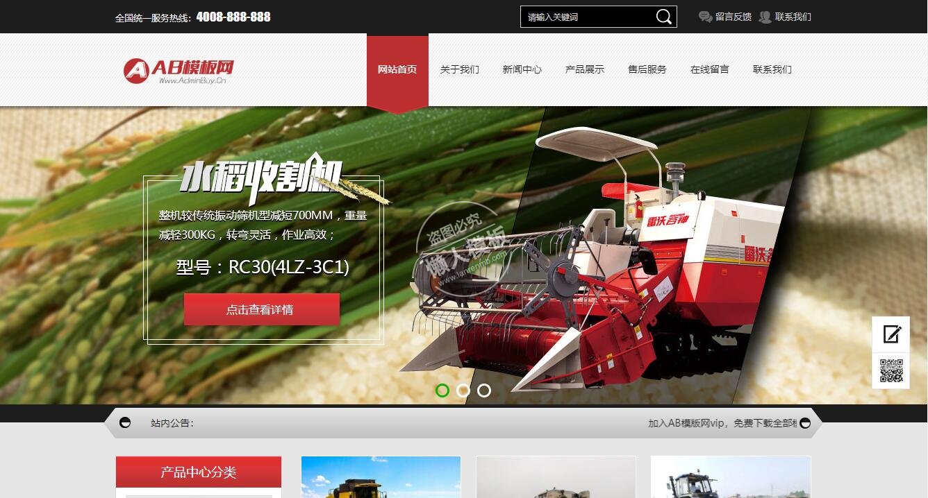 模板简介:该模板名称为【农机产品农业机械类整站带织梦后台pc手机双网站源码下载】,大小是,文档格式为.,推荐使用打开,作品中的图片,文字等数据均可修改,图片请在作品中选中图片替换即可,文字修改直接点击文字修改即可,您也可以新增或修改作品中的内容,该模板来自用户分享,如有侵权行为请联系网站客服处理。欢迎来懒人模板【农业】栏目查找您需要的精美模板。