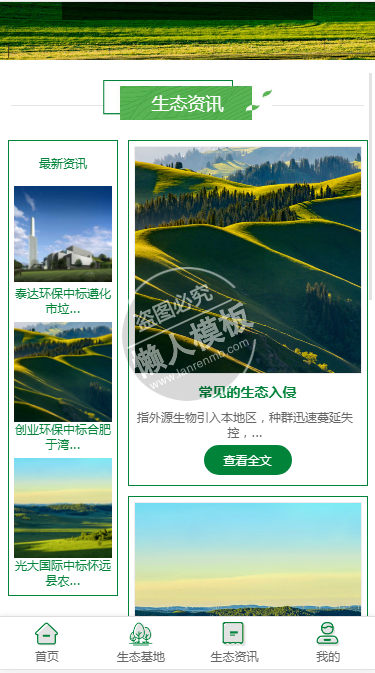 模板简介:该模板名称为【春雨生态基地自适应响应式农业网站双模板下载】,大小是,文档格式为.,推荐使用打开,作品中的图片,文字等数据均可修改,图片请在作品中选中图片替换即可,文字修改直接点击文字修改即可,您也可以新增或修改作品中的内容,该模板来自用户分享,如有侵权行为请联系网站客服处理。欢迎来懒人模板【农业】栏目查找您需要的精美模板。