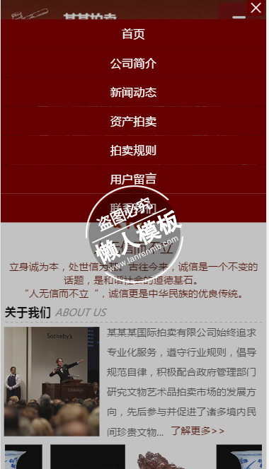 模板简介:该模板名称为【人无信而不立触屏版手机wap拍卖商城网站模板免费下载】,大小是,文档格式为.,推荐使用打开,作品中的图片,文字等数据均可修改,图片请在作品中选中图片替换即可,文字修改直接点击文字修改即可,您也可以新增或修改作品中的内容,该模板来自用户分享,如有侵权行为请联系网站客服处理。欢迎来懒人模板【拍卖】栏目查找您需要的精美模板。