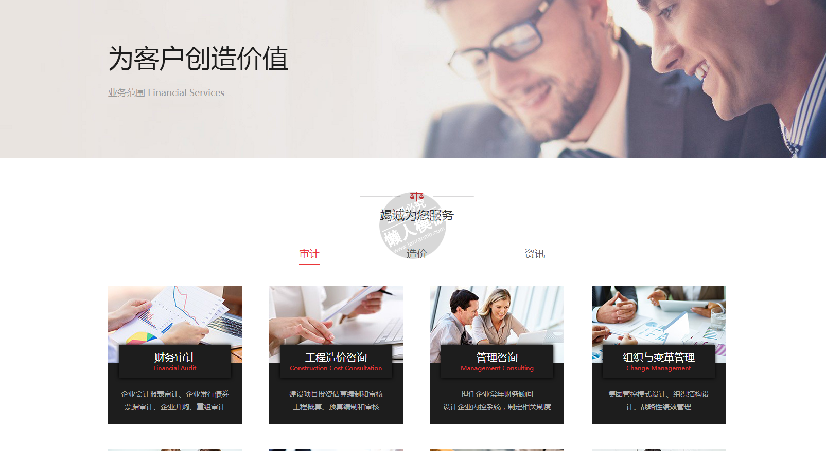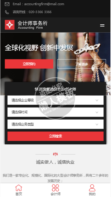 模板简介:该模板名称为【华星会计事务所手机pc端响应式双模板下载】,大小是,文档格式为.,推荐使用打开,作品中的图片,文字等数据均可修改,图片请在作品中选中图片替换即可,文字修改直接点击文字修改即可,您也可以新增或修改作品中的内容,该模板来自用户分享,如有侵权行为请联系网站客服处理。欢迎来懒人模板【商业】栏目查找您需要的精美模板。