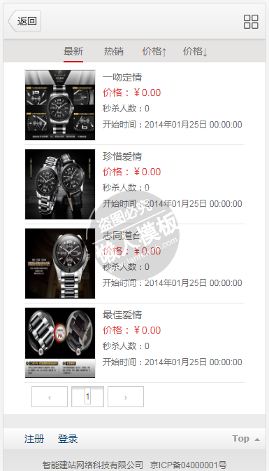 模板简介:该模板名称为【宾格手表热卖商城购物网站模板源码免费下载】,大小是,文档格式为.,推荐使用打开,作品中的图片,文字等数据均可修改,图片请在作品中选中图片替换即可,文字修改直接点击文字修改即可,您也可以新增或修改作品中的内容,该模板来自用户分享,如有侵权行为请联系网站客服处理。欢迎来懒人模板【钟表】栏目查找您需要的精美模板。