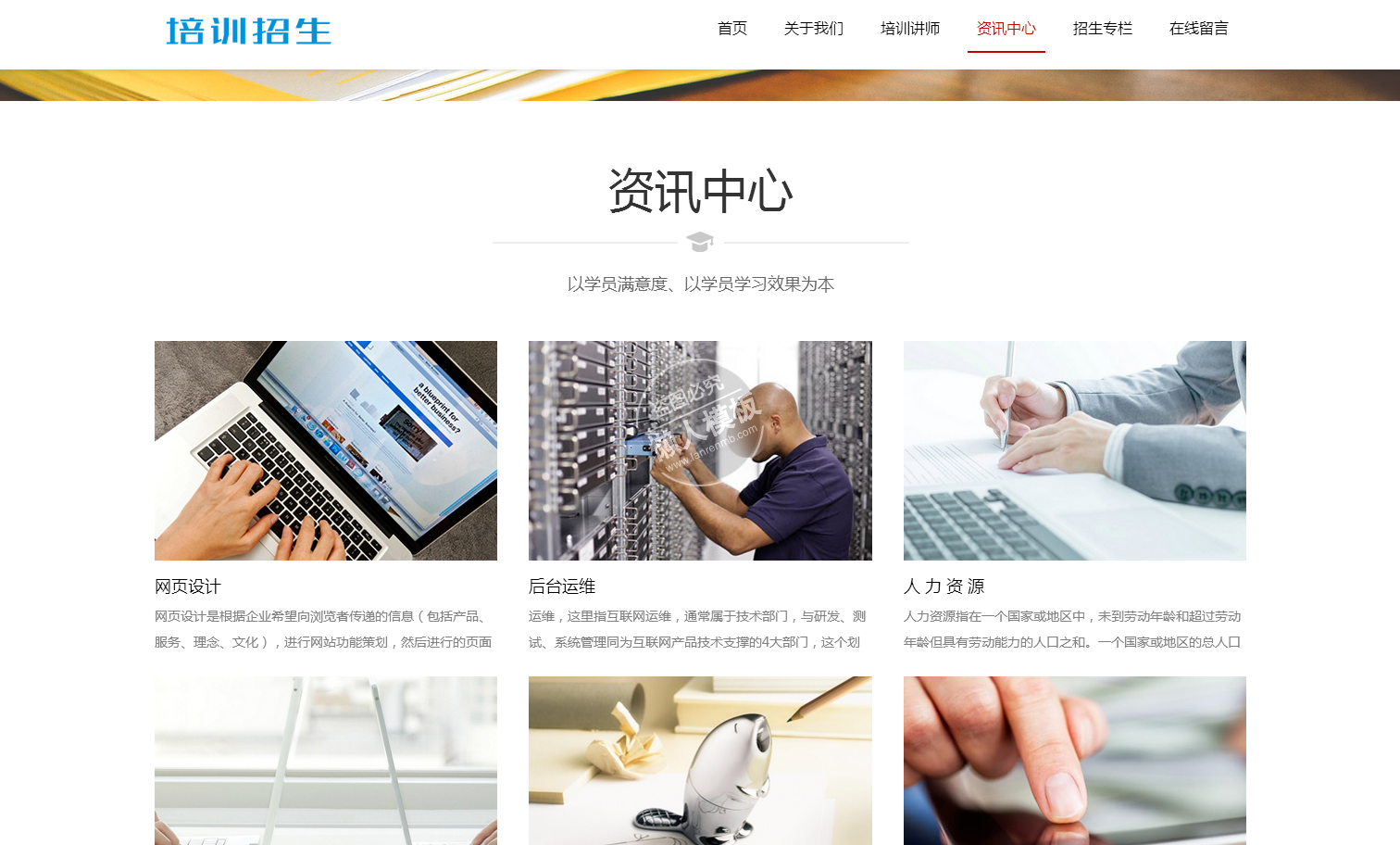 模板简介:该模板名称为【招生教育类网站整站带织梦后台pc手机双网站源码下载】,大小是,文档格式为.,推荐使用打开,作品中的图片,文字等数据均可修改,图片请在作品中选中图片替换即可,文字修改直接点击文字修改即可,您也可以新增或修改作品中的内容,该模板来自用户分享,如有侵权行为请联系网站客服处理。欢迎来懒人模板【培训】栏目查找您需要的精美模板。