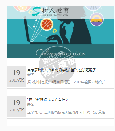模板简介:该模板名称为【树人教育自适应响应式教育网站双模板下载】,大小是,文档格式为.,推荐使用打开,作品中的图片,文字等数据均可修改,图片请在作品中选中图片替换即可,文字修改直接点击文字修改即可,您也可以新增或修改作品中的内容,该模板来自用户分享,如有侵权行为请联系网站客服处理。欢迎来懒人模板【培训】栏目查找您需要的精美模板。