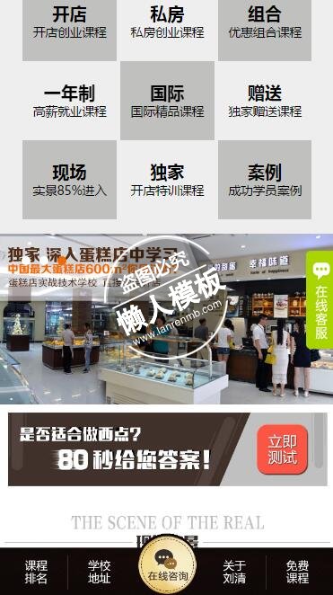 模板简介:该模板名称为【刘清西点触屏版自适应手机wap培训学校网站模板下载】,大小是,文档格式为.,推荐使用打开,作品中的图片,文字等数据均可修改,图片请在作品中选中图片替换即可,文字修改直接点击文字修改即可,您也可以新增或修改作品中的内容,该模板来自用户分享,如有侵权行为请联系网站客服处理。欢迎来懒人模板【培训】栏目查找您需要的精美模板。
