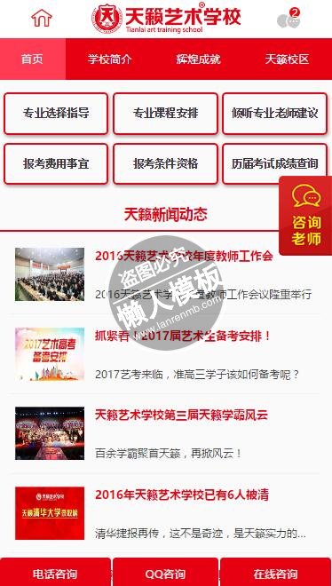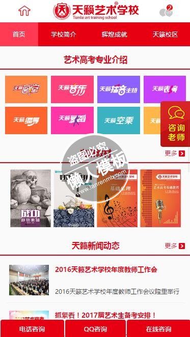 模板简介:该模板名称为【天籁艺术学校触屏版自适应手机wap学校网站模板下载】,大小是,文档格式为.,推荐使用打开,作品中的图片,文字等数据均可修改,图片请在作品中选中图片替换即可,文字修改直接点击文字修改即可,您也可以新增或修改作品中的内容,该模板来自用户分享,如有侵权行为请联系网站客服处理。欢迎来懒人模板【学校】栏目查找您需要的精美模板。