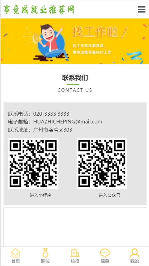 模板简介:该模板名称为【事竟成就业推荐网展示网站自适应响应式招聘网站模板免费下载】,大小是,文档格式为.,推荐使用打开,作品中的图片,文字等数据均可修改,图片请在作品中选中图片替换即可,文字修改直接点击文字修改即可,您也可以新增或修改作品中的内容,该模板来自用户分享,如有侵权行为请联系网站客服处理。欢迎来懒人模板【招聘】栏目查找您需要的精美模板。