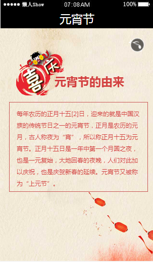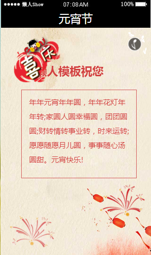 模板简介:该模板名称为【免费轻app微信HTML5移动场景喜庆元宵节应用模板源码制作】,大小是,文档格式为.,推荐使用打开,作品中的图片,文字等数据均可修改,图片请在作品中选中图片替换即可,文字修改直接点击文字修改即可,您也可以新增或修改作品中的内容,该模板来自用户分享,如有侵权行为请联系网站客服处理。欢迎来懒人模板【场景应用】栏目查找您需要的精美模板。