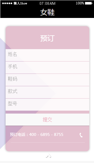 模板简介:该模板名称为【免费轻app微信HTML5移动场景女鞋应用模板源码制作】,大小是,文档格式为.,推荐使用打开,作品中的图片,文字等数据均可修改,图片请在作品中选中图片替换即可,文字修改直接点击文字修改即可,您也可以新增或修改作品中的内容,该模板来自用户分享,如有侵权行为请联系网站客服处理。欢迎来懒人模板【服装】栏目查找您需要的精美模板。