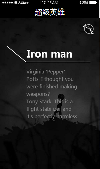 模板简介:该模板名称为【免费轻app微信HTML5移动场景超级英雄应用模板源码制作】,大小是,文档格式为.,推荐使用打开,作品中的图片,文字等数据均可修改,图片请在作品中选中图片替换即可,文字修改直接点击文字修改即可,您也可以新增或修改作品中的内容,该模板来自用户分享,如有侵权行为请联系网站客服处理。欢迎来懒人模板【影视】栏目查找您需要的精美模板。