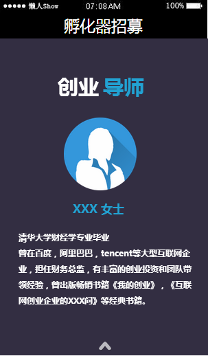 模板简介:该模板名称为【免费轻app微信HTML5移动场景孵化器招募应用模板源码制作】,大小是,文档格式为.,推荐使用打开,作品中的图片,文字等数据均可修改,图片请在作品中选中图片替换即可,文字修改直接点击文字修改即可,您也可以新增或修改作品中的内容,该模板来自用户分享,如有侵权行为请联系网站客服处理。欢迎来懒人模板【招聘】栏目查找您需要的精美模板。
