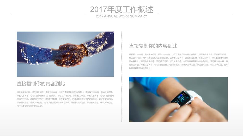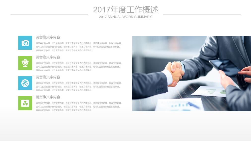 模板简介:该模板名称为【年终工作总结会议报告座谈交流汇报PPT模板整套素材免费下载】,大小是4.25M,文档格式为.PPTX,推荐使用Microsoft PPT/WPS打开,作品中的图片,文字等数据均可修改,图片请在作品中选中图片替换即可,文字修改直接点击文字修改即可,您也可以新增或修改作品中的内容,该模板来自用户分享,如有侵权行为请联系网站客服处理。欢迎来懒人模板【工作总结】栏目查找您需要的精美模板。
