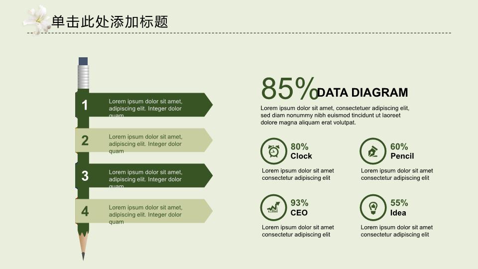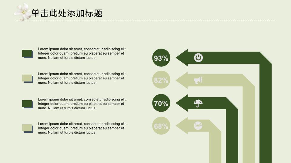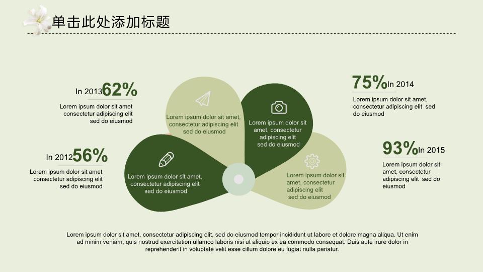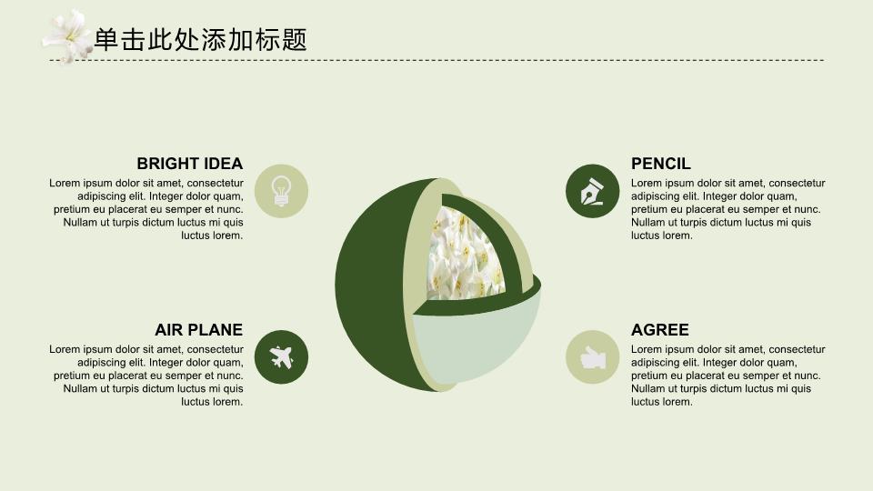 模板简介:该模板名称为【淡雅花香工作总结通用PPT模板整套素材免费下载】,大小是1.49 MB,文档格式为.PPTX,推荐使用Microsoft PPT/WPS打开,作品中的图片,文字等数据均可修改,图片请在作品中选中图片替换即可,文字修改直接点击文字修改即可,您也可以新增或修改作品中的内容,该模板来自用户分享,如有侵权行为请联系网站客服处理。欢迎来懒人模板【工作总结】栏目查找您需要的精美模板。