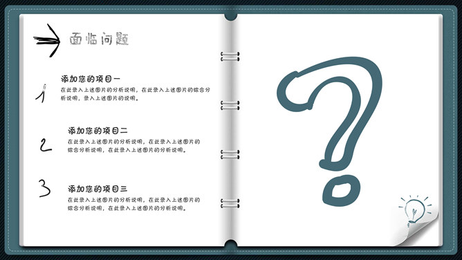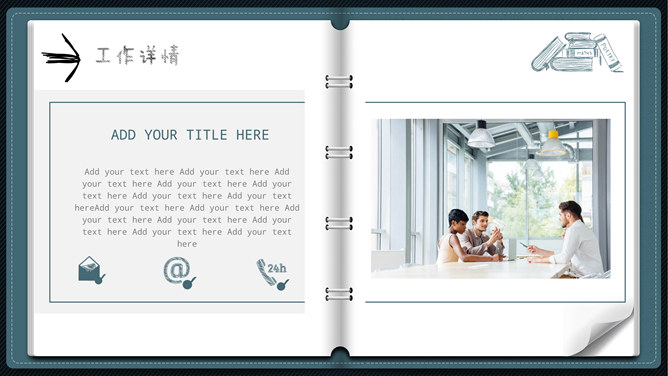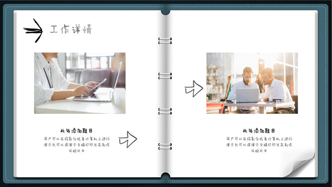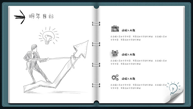 模板简介:该模板名称为【创意翻页活页笔记本工作总结PPT模板整套素材免费下载】,大小是2.53MB,文档格式为.PPTX,推荐使用Microsoft PPT/WPS打开,作品中的图片,文字等数据均可修改,图片请在作品中选中图片替换即可,文字修改直接点击文字修改即可,您也可以新增或修改作品中的内容,该模板来自用户分享,如有侵权行为请联系网站客服处理。欢迎来懒人模板【工作总结】栏目查找您需要的精美模板。